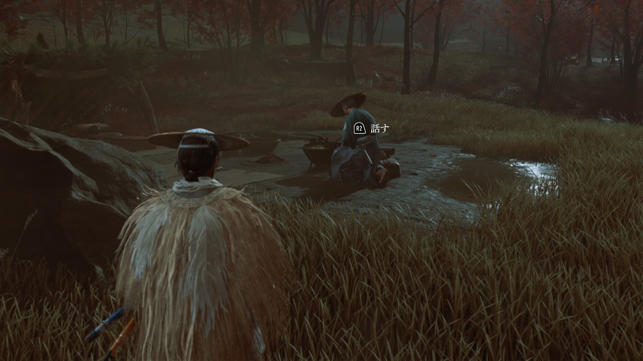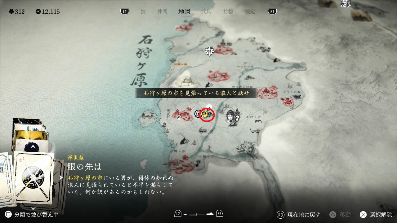 に戻って、酒処の隣の家にいる女に形見の品を渡すと、浮世草 完了。