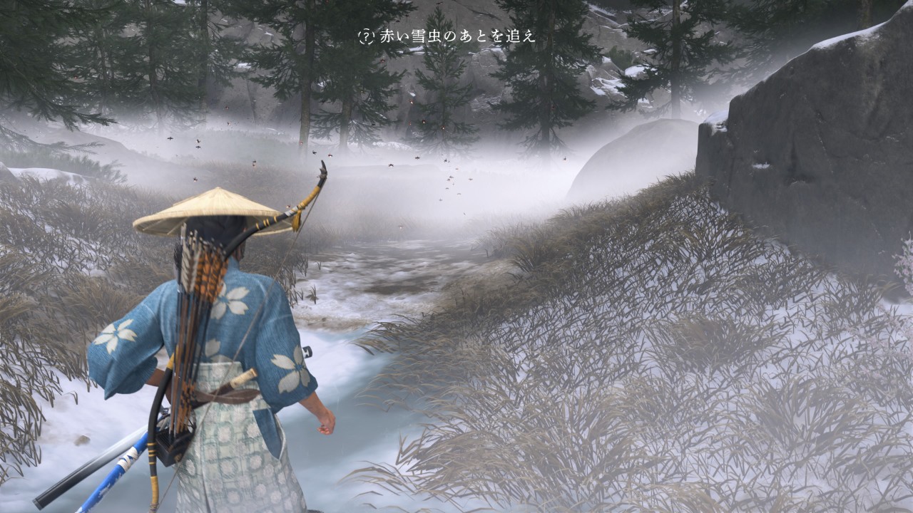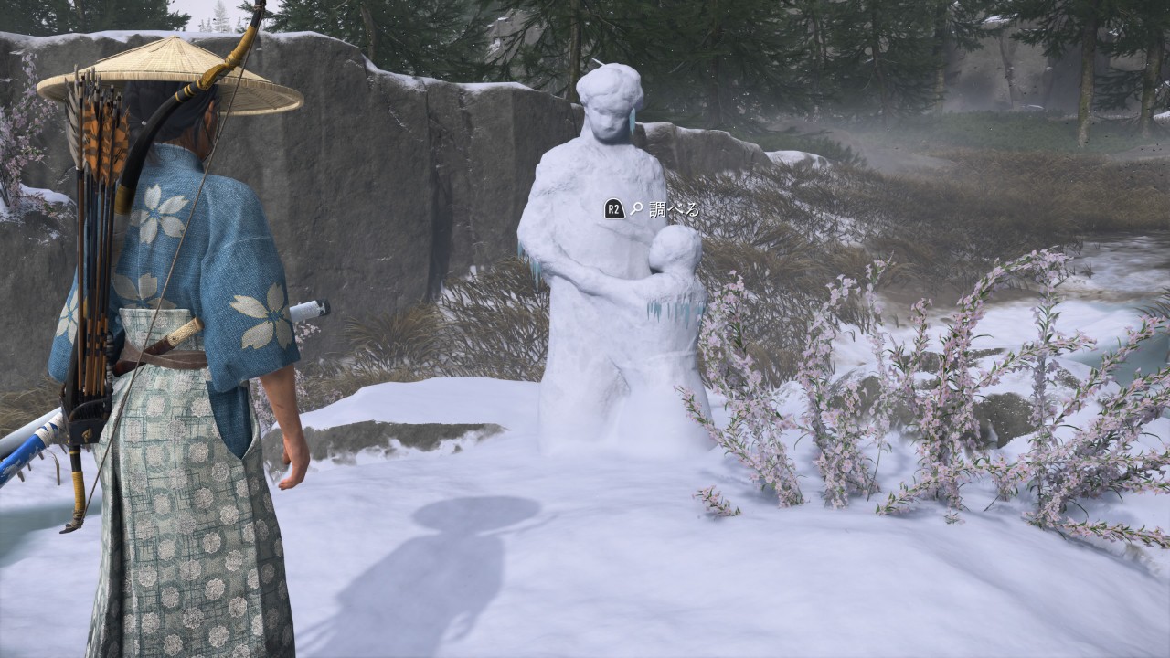 | [07] | 赤い雪虫 たちの後を追いかけた先で、古い人家の中 を調べた後、家の外の雪像を調べる。 |
