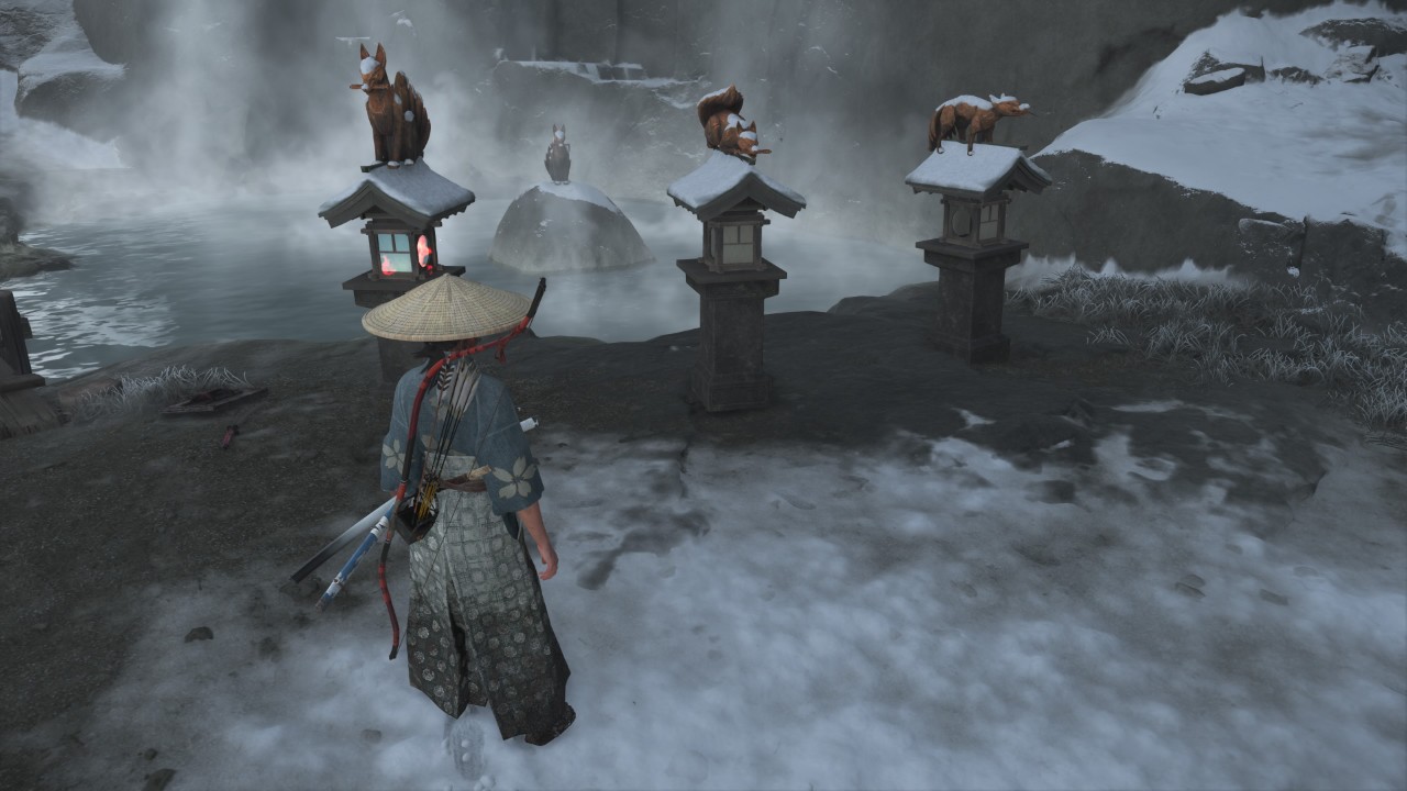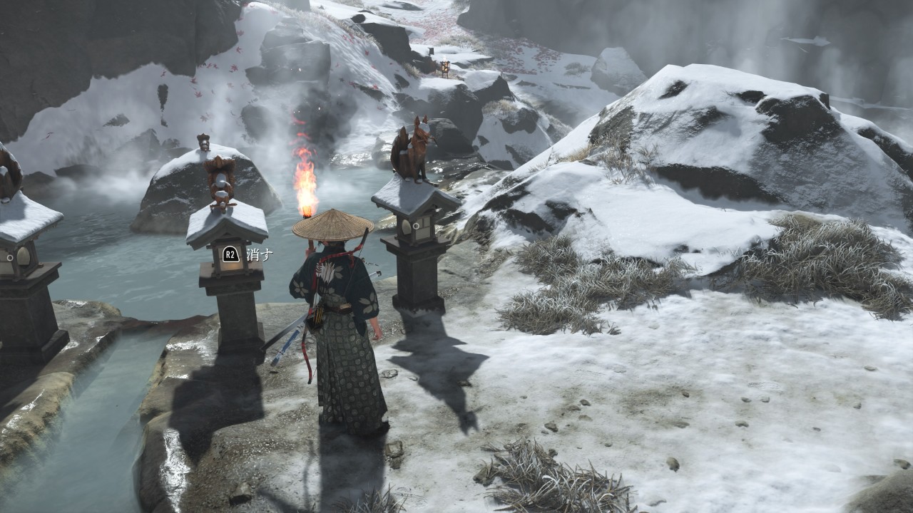 へ行って、付近にいる敵を全て倒した後、まわりに配置してある狐の像に火を灯すと、奥へ続く扉が開く。