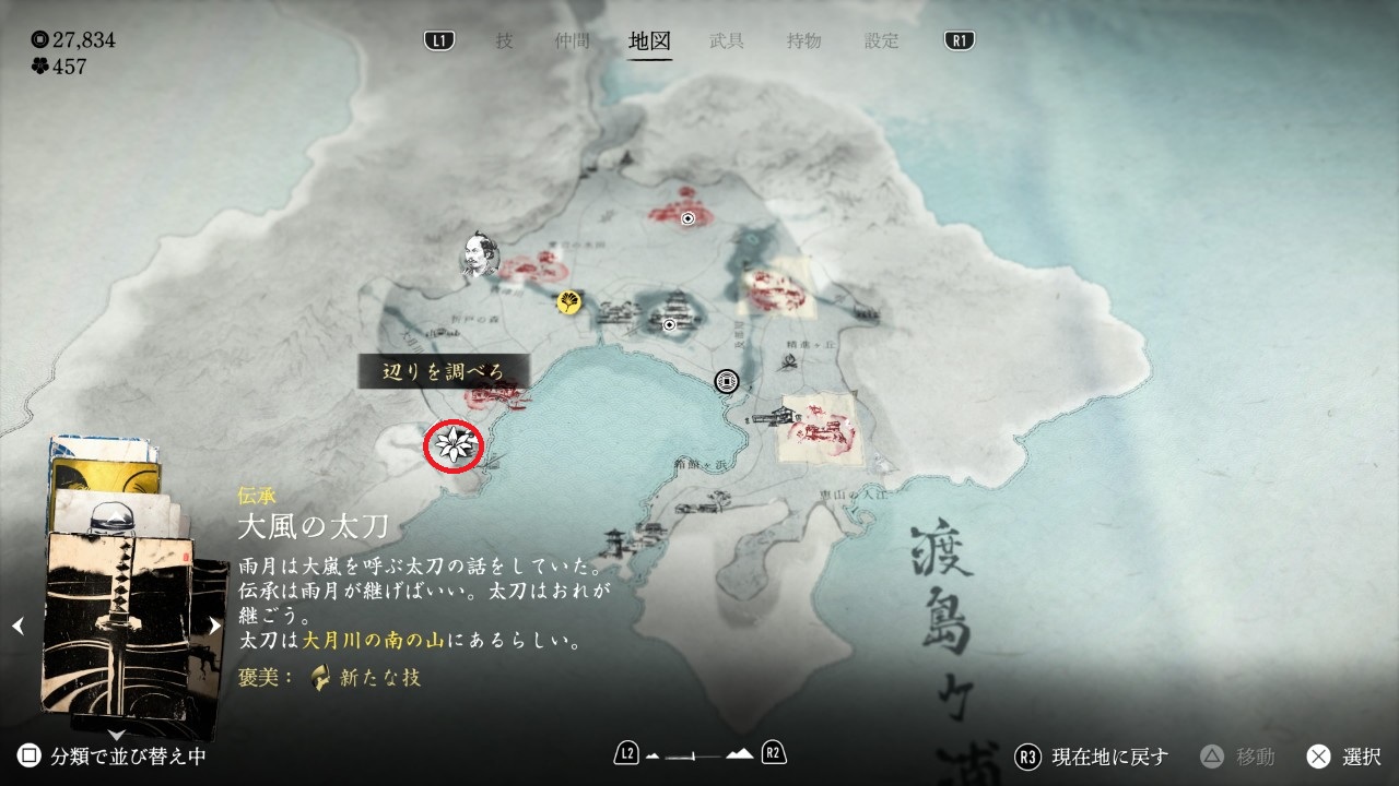| ■ | 発見/入手品 | : 大風之太刀 + 冥人の面頬 |