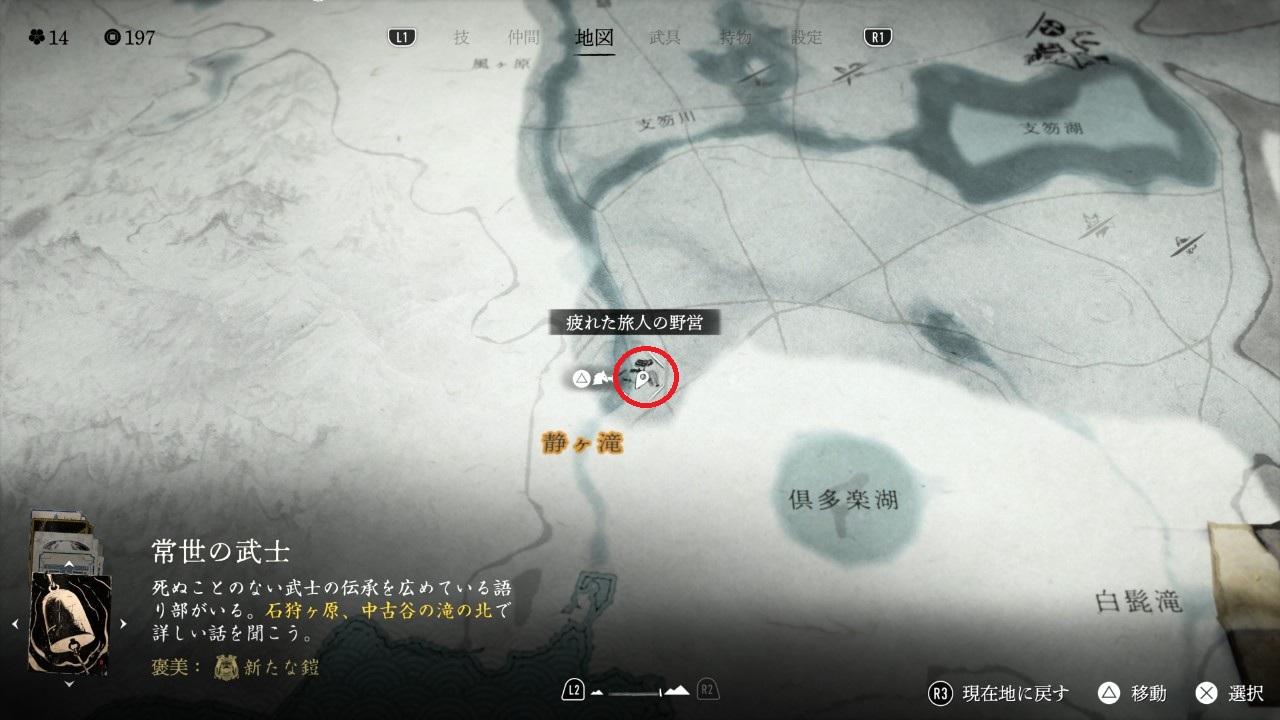 を一通り調べた後、焚火で休むと旅人がやってくる。