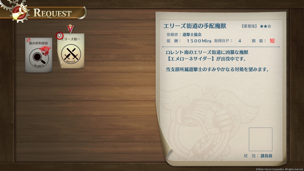 サブクエスト : エリーズ街道の手配魔獣